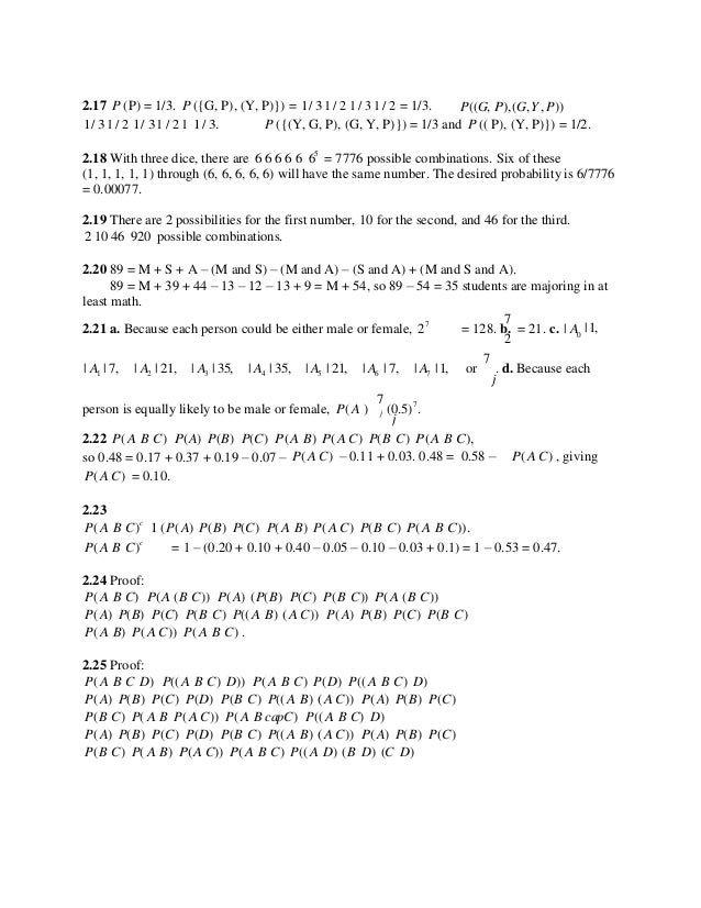 All Access to Probability By J Pitman Solution Manual Free Books PDF. Free Download Probability By J Pitman Solution Manual Free Books PDF or Read Probability By J Pitman Solution Manual Free Books PDF on The Most Popular Online PDFLAB. Only Register an Account to DownloadProbability By J Pitman Solution Manual Free Books PDF. About the authors This is a text for a one-quarter or one-semester course in probability, aimed at students who have done a year of calculus. The book is organised so a student can learn the fundamental ideas of probability from the first three chapters without reliance on calculus. Later chapters develop these ideas further using calculus tools. Probability By Jim Pitman Solutions Manual d47eq9z72yn2 Solution for exercise 1.2.4 in Pitman It may be useful to read the denition of Odds and payoodds in Pitman pp. 6 in order to solve this exercise Question a) We dene the prot pr pr= 10(8 + 1) 100 1 = 10 Question b) The average gain.